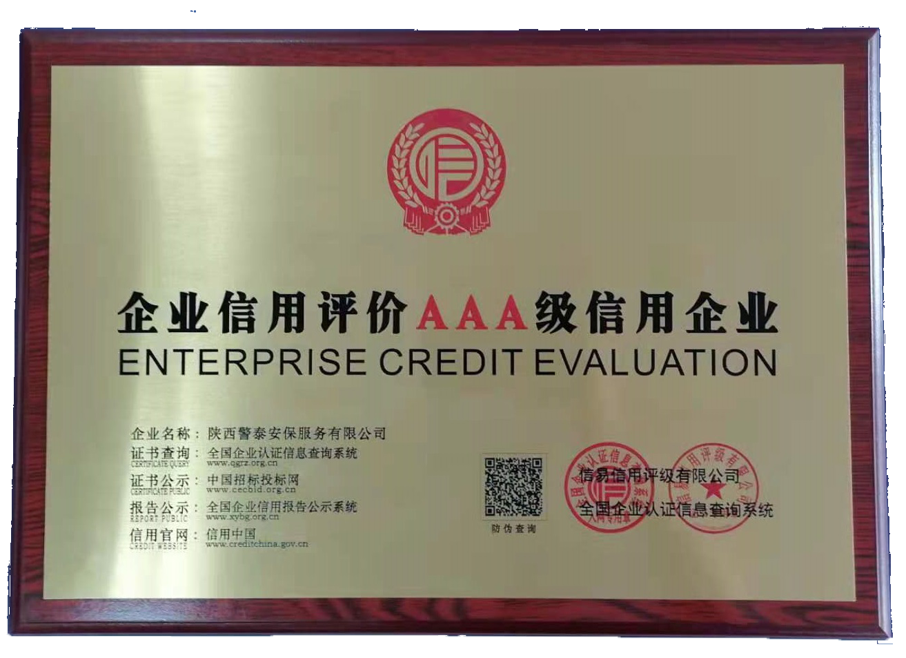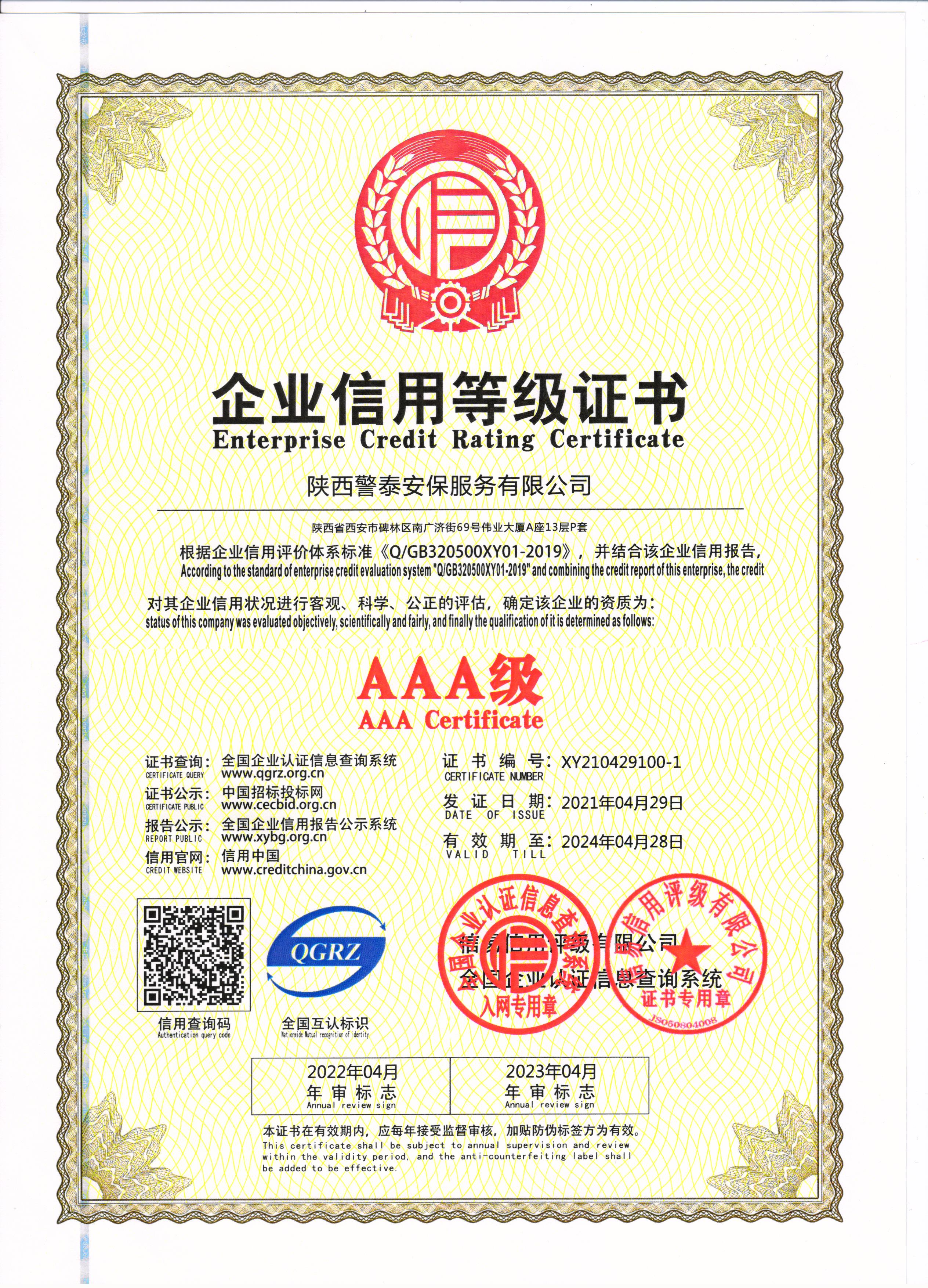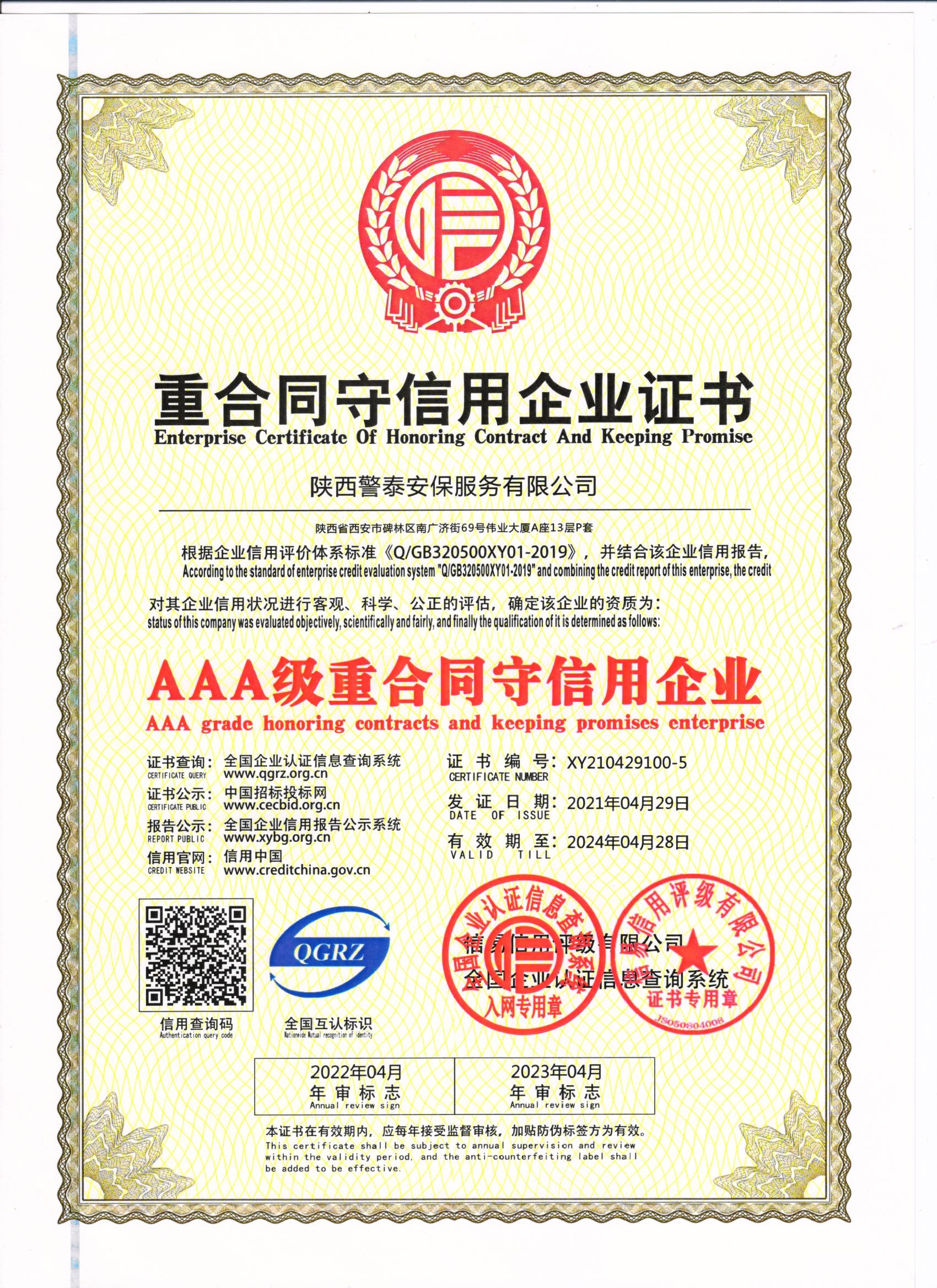 設(shè)為首頁(yè) 加入收藏熱烈祝賀陜西警泰安保服務(wù)有限公司榮獲AAA級(jí)信