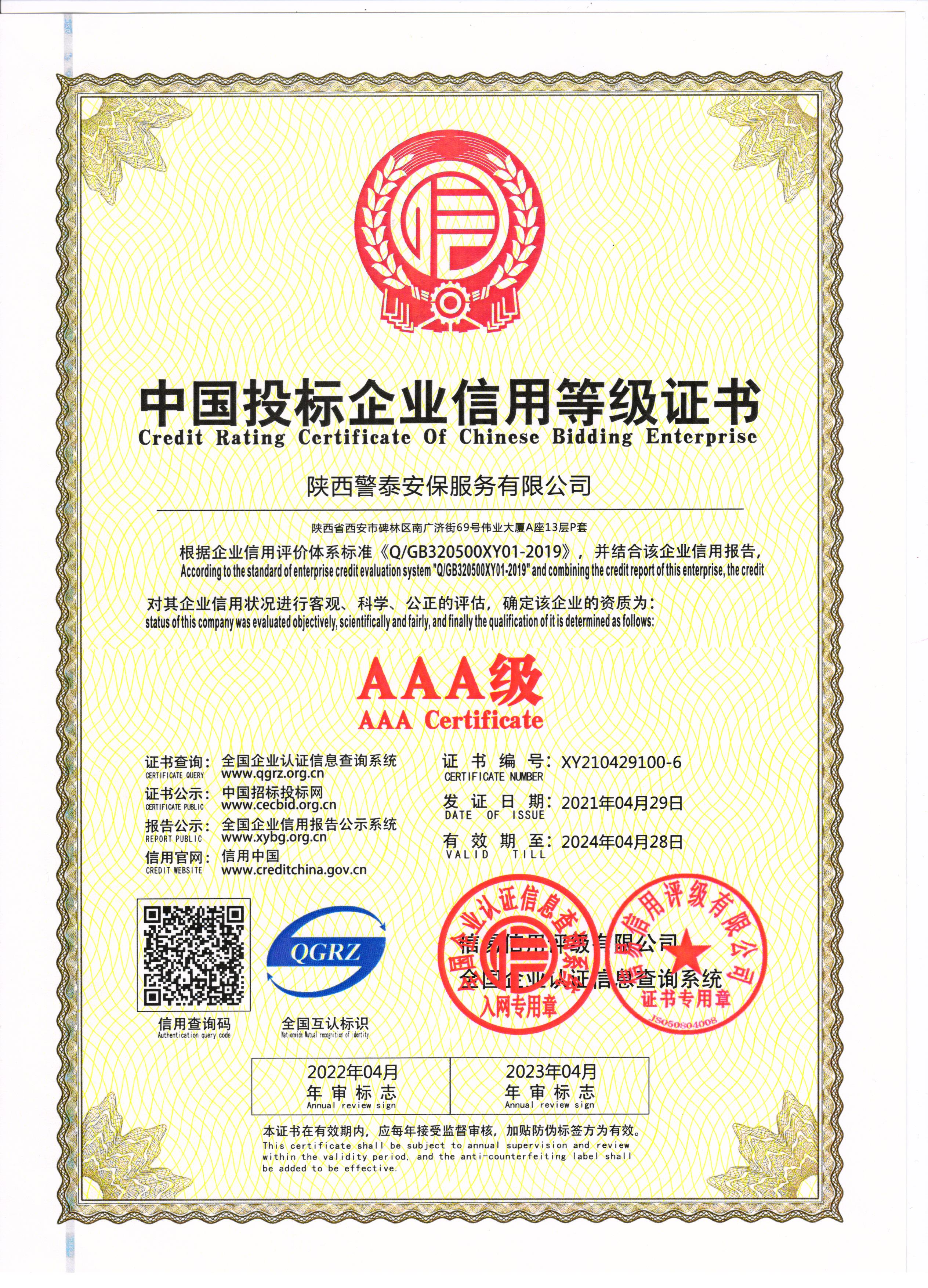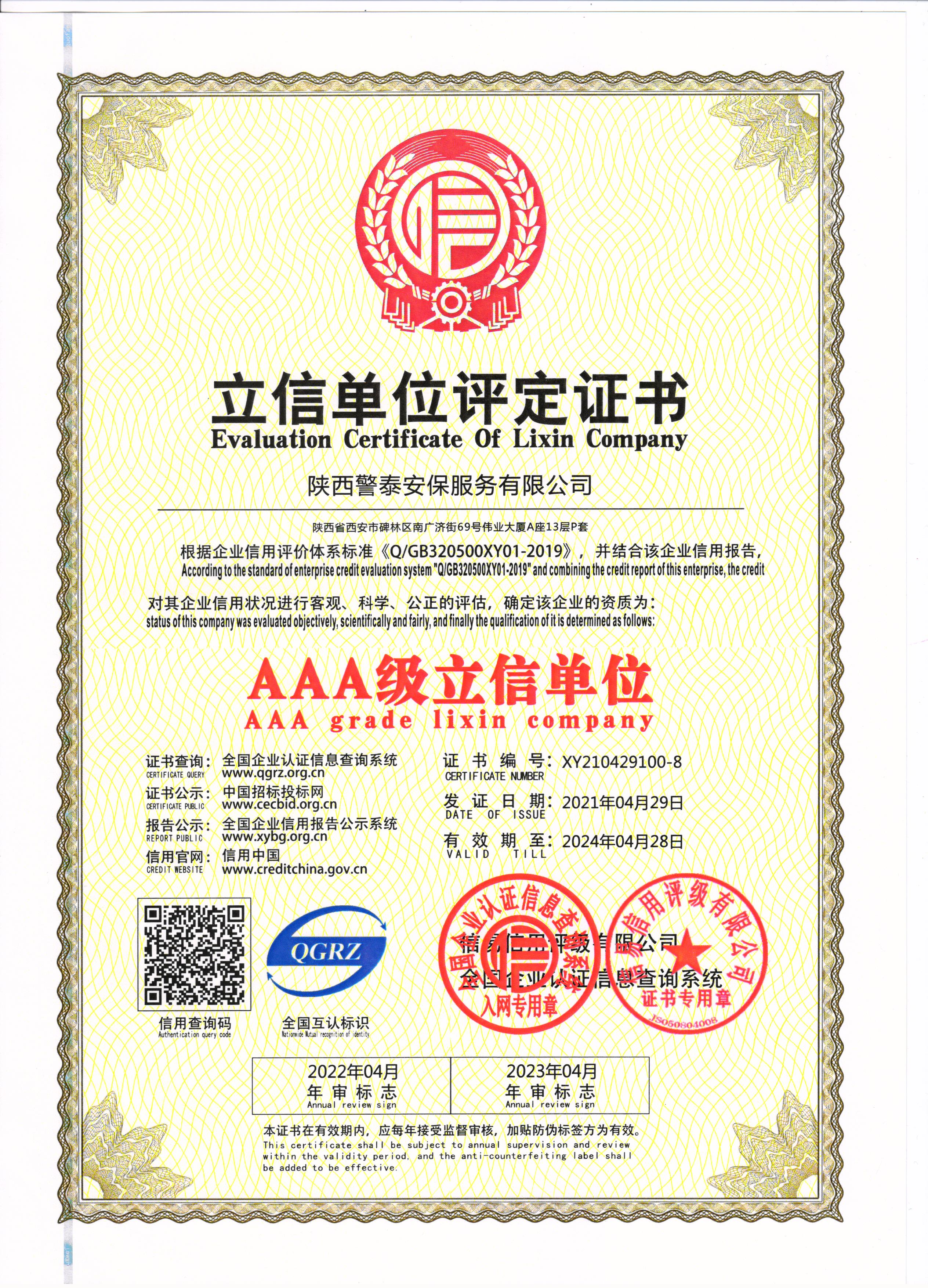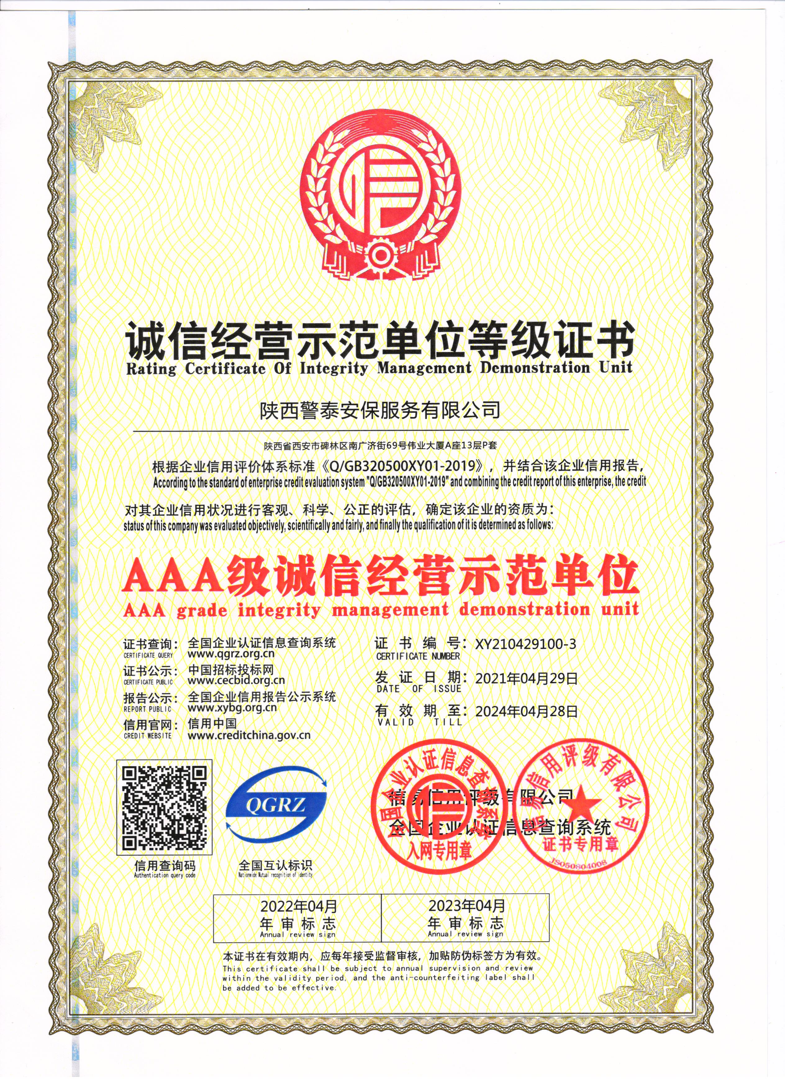 設(shè)為首頁(yè) 加入收藏熱烈祝賀陜西警泰安保服務(wù)有限公司榮獲AAA級(jí)信